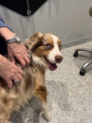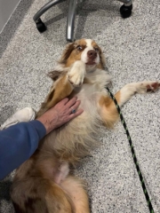 On January 12th 2025, he escaped the yard and went missing for 4 days. After many hours and days of searching, he was found on January 16th 2025. When he was found, he seemed to have gotten injured during this said adventure. His right back leg had gashes that were scabbed over, but he refused to put any weight on it and was visibly in pain. His testicles were also enlarged and black possibly indicating trauma. Due to this as well as just wanting a checkup considering he could’ve been hit by a car or faced some sort of trauma, Danielle and Keavoughn, his parents, took him to the vet on 1/17/2025.